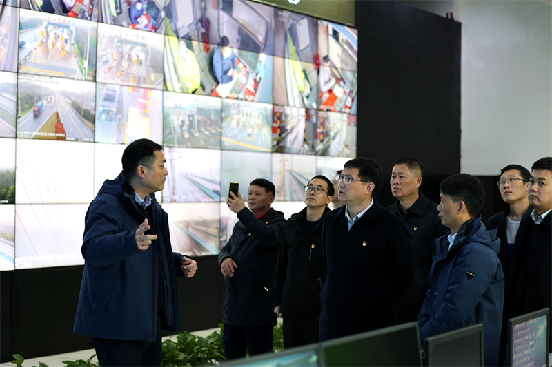 在監(jiān)控中心,李華平一行聽取了公司5G+橋梁智慧養(yǎng)護、5G+健康監(jiān)測、5G+數(shù)智安環(huán)和5G+數(shù)智運營等各項目平臺的功能介紹和場景應(yīng)用,對九江二橋數(shù)字化升級和管理創(chuàng)新取得的成果給予高度評價,雙方還就下一步工作思路交流了意見。