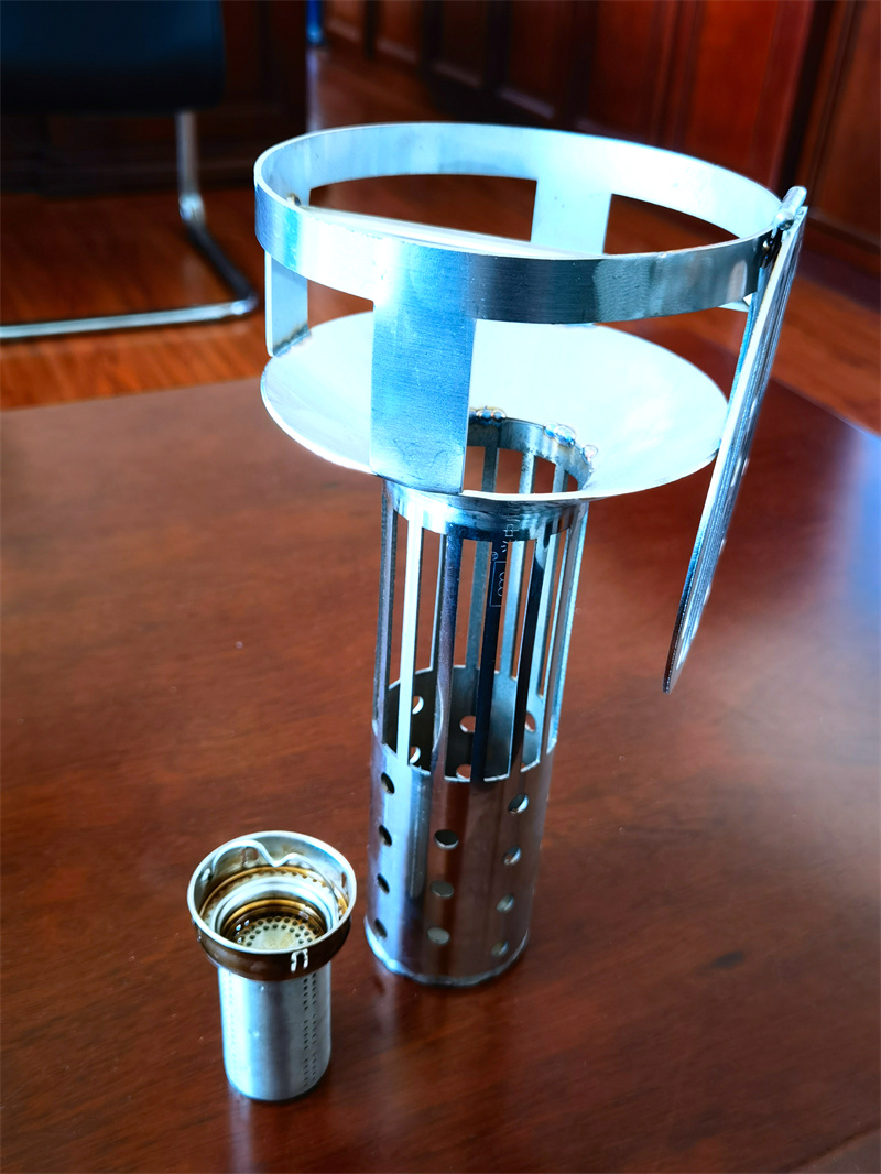 另外,由九江二橋自主創(chuàng)新、自主研發(fā)制作的一種橋梁泄水孔過濾裝置讓人眼前一亮。傳統(tǒng)大橋集中排水裝置的下水彎頭極易堵塞,疏通過程常常破壞排水管壁,養(yǎng)護人員從實踐中找辦法,通過觀察對比,用小發(fā)明、小技改制作出“茶漏”式泄水孔過濾裝置,很好解決了排水堵塞問題。九江二橋負責人介紹,二橋泄水孔共計2040個,此一項小技改相較傳統(tǒng)防堵塞泄水槽改造節(jié)約了幾百萬元投入?!皢栴}在現(xiàn)場,解決方案在基層,實踐出真知”,萬小春對此項小技改夸贊不已。